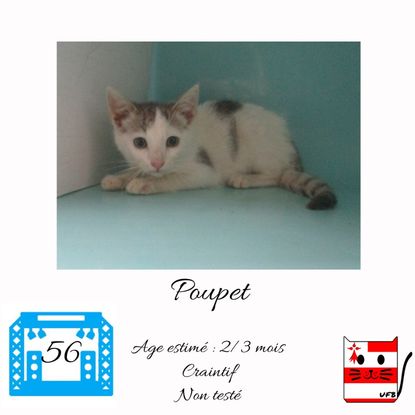 Poupet est un mâle de 2-3 mois craintif (un comportement normal en fourrière) qui vous attend dans une fourrière du 56. ATTENTION SORTIE AU PLUS TARD LE 20/08/2021 (avant euthanasie) !