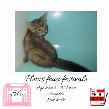 Pleins feux festivale est une femelle de 3-4 mois sociable qui vous attend dans une fourrière du 56. ATTENTION SORTIE AU PLUS TARD LE 20/08/2021 (avant euthanasie) !