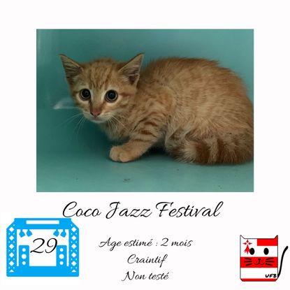 Coco Jazz Festival est un mâle de 2 mois craintif (un comportement normal en fourrière) qui vous attend dans une fourrière du 29. ATTENTION SORTIE AU PLUS TARD LE 20/08/2021 (avant euthanasie) !