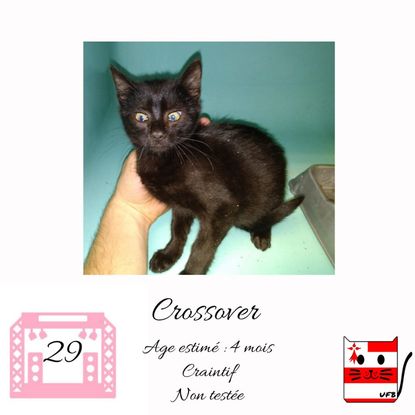 Crossover est une femelle de 4 mois craintive (un comportement normal en fourrière) qui vous attend dans une fourrière du 29. ATTENTION SORTIE AU PLUS TARD LE 20/08/2021 (avant euthanasie) !