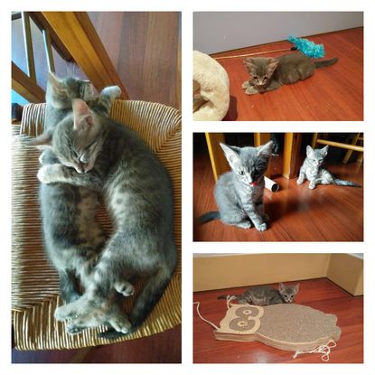 Salut ! Nous c'est Lazuli (femelle) et Warung (mâle), nous sommes nés mi juin. Jamais l'un sans l'autre, nous faisons tous ensemble. Nous sommes de vrais aventuriers, curieux intrépides et joueurs, on a de l'énergie à revendre. On adore aider notre famille d'accueil dans les tâches ménagères, on suiveille le linge à travers le hublot ! Nous avons été tous les 2 récupérés dans la rue. Même si au départ nous étions très timides, nous faisons des efforts chaque jour et aimons les câlins, la boîte à ronron commence à se mettre en route ! Nous avons hâtes de trouver notre famille pour la vie. Nous sommes en famille d'accueil à St Vallier (26) chez Perrine, sous contrat associatif. Nous partirons pucés, déparasités et avec un certificat de bonne santé. Des frais d'adoption sont à prévoir. Contact au 06.65.64.18.80