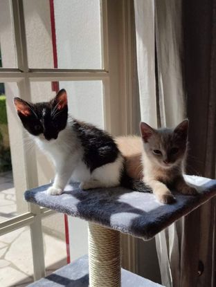 Tous les deux sont très mignons ils auront besoin d’un petit peu de temps pour s’habituer à leur nouvel environnement. Une double adoption serait un plus