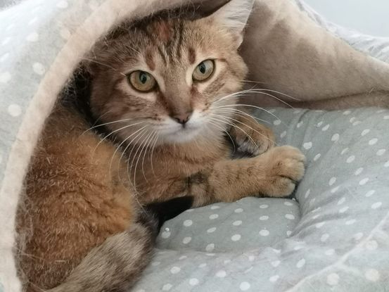 Saphyra est une chatte trèèèèès timide qui met beaucoup de temps à se sentir bien dans son environnement et à apprécier la présence des êtres humains.