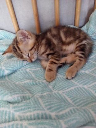 Safari fait partie des 3 mâles nés vers le 24 avril, trouvés fin avril dans un carton devant le cabinet d'un vétérinaire.
