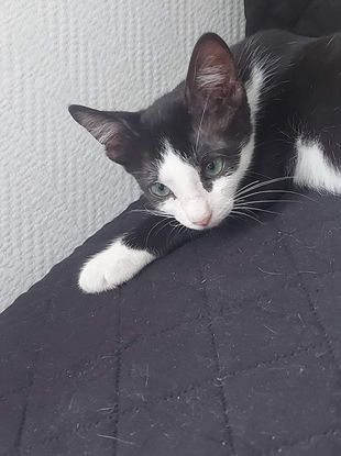 Voici Lutti, petit mâle noir et blanc né mi mai. Lutti est un petit chaton curieux et débrouillard. En cours de sociabilisation, il a une belle capacité d’adaptation et un gros potentiel ronrons ! Tout doux à caresser et avec ses yeux couleur émeraude, Lutti vous fera fondre dès le premier regard ! Il attend un foyer pour la vie à charmes sur Rhône 07800 joignable au 0647033220 chez Ysanna.