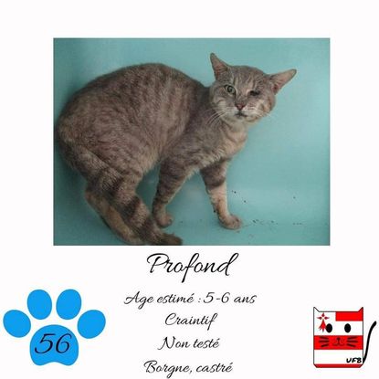 Profond est un mâle de 5-6 ans craintif (un comportement normal en fourrière) qui vous attend dans une fourrière du 56. ATTENTION SORTIE AU PLUS TARD LE 28/08/2021 (avant euthanasie) !