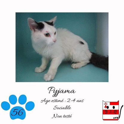 Pyjama est un mâle de 2-4 ans sociable qui vous attend dans une fourrière du 56. ATTENTION SORTIE AU PLUS TARD LE 28/08/2021 (avant euthanasie) !