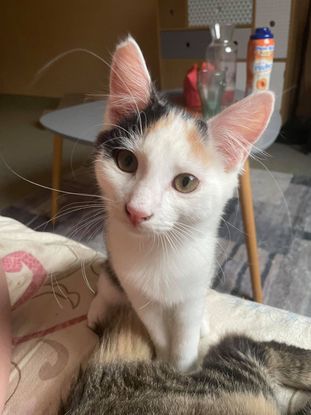 Tagada est née dans une boulangerie. C'est une minette sociable, joueuse, câline et qui pourra s'adapter dans un foyer avec des enfants.
