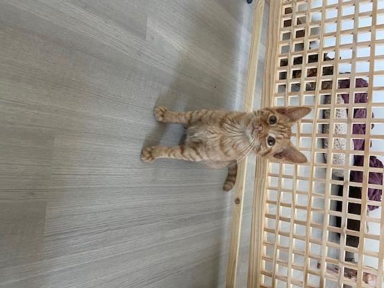 Je suis un petit mâle né le 01/06/2021 et j'ai été récupéré dans la rue avec mon frère et ma soeur dans un état pas très joli ! Mais on a bien récupéré maintenant !