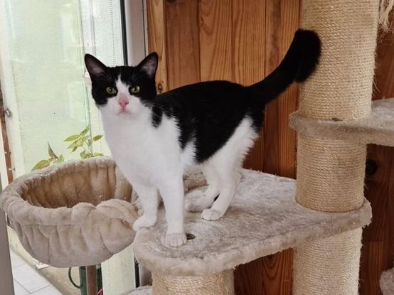 Par contre, pas timide pour 2 sous, c'est un petit fonceur. Très sociable avec les autres chats.
