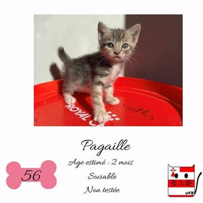 Pagaille est une femelle de 2 mois sociable qui vous attend dans une fourrière du 56. ATTENTION SORTIE AU PLUS TARD LE 03/09/2021 (avant euthanasie) !