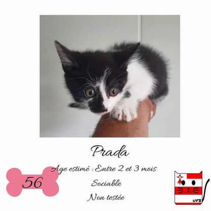 Prada est une femelle de 2-3 mois sociable qui vous attend dans une fourrière du 56. ATTENTION SORTIE AU PLUS TARD LE 03/09/2021 (avant euthanasie) !