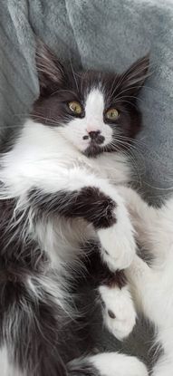 Bonjour, moi c'est Sky. Je suis une gentille chatonne née le 17 mai 2021. J'ai été sauvée et sortie de la rue avec mes frères et soeurs. Je suis la douceur incarnée et je suis sûre que cela vous séduira !