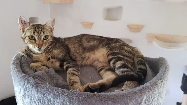 Désormais, elle revit, joue, observe par la fenêtre le ballet des oiseaux. C'est une minette câline qui place une très grande confiance en l'humain, comme son sauvetage et celui de ses petits l'ont montré.
