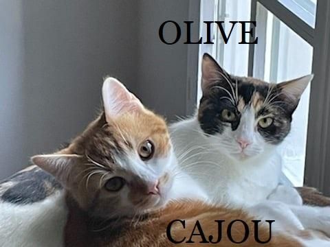 CAJOU est un mâle (roux et blanc) et OLIVE (femelle tricolore)