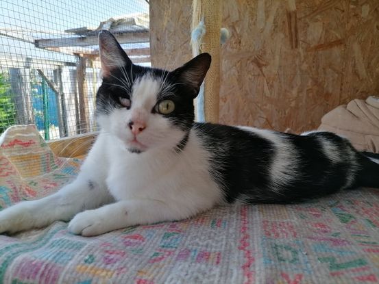 HISTOIRE : SAMY a été trouvé errant, nous ne savons rien de sa vie d’avant. Il a sans doute perdu son œil lors d'un bagarre à cause de sa non stérilisation.
