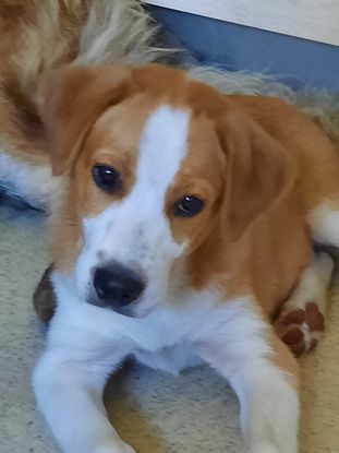 Bonjour, moi c'est Sunny ! Je suis un adorable chiot (mâle) né le 03/06/2021 croisé labrador et peut-être beagle.