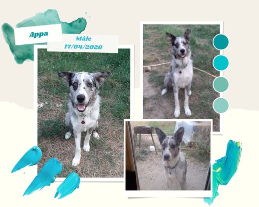 Appa Né le 17/04/2020 ( 1 ans et demi ) X Berger Australien Bleu merle 25 kilos Amical avec les chiens. Pas ok chats.