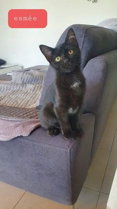 Je m’appelle Esmée car je suis douce et câline. Je suis née le 26 avril. J’ai été abandonnée avec ma maman alors que je n’étais qu’un tout petit chaton. Aujourd’hui j’ai reçu tous les codes d’une bonne éducation et je suis prête à rejoindre ma vrai famille. J’adore jouer avec les enfants. Durant les câlins vous pourrez profiter de mon doux pelage si soyeux. Vous pouvez venir me rencontrer a Pierrelatte tel : 0628051425 Participation au frais ( vermifuge. Déparasitage, identification par puce électronique)100 euros .