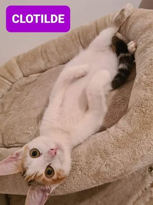 chatonne de 4 mois tricolore, un tout petit peu timide puis très câline. Peut être adoptée seule sans autres chats. Sera une minette très chouette une fois en confiance.