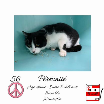 Pérennité est une femelle de 3-5 ans sociable qui vous attend dans une fourrière du 56. ATTENTION SORTIE AU PLUS TARD LE 24/09/2021 (avant euthanasie) !