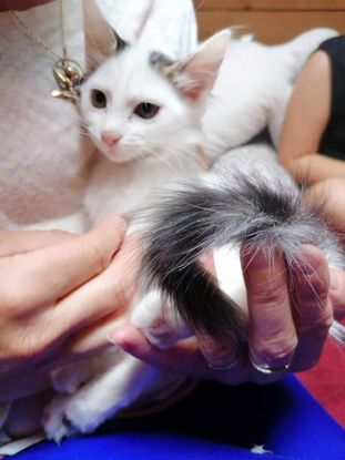 Je vous présente Odin né mi juillet. Petit mâle blanc avec des beaux yeux vairons, calme, qui adore les câlins et les gratouilles, est à adopter sous contrat associatif, des frais de 100 euros sont demandés pour une participation aux frais vétérinaires, visible sur pont St esprit, et disponible début octobre Tel 06 20 67 23 53