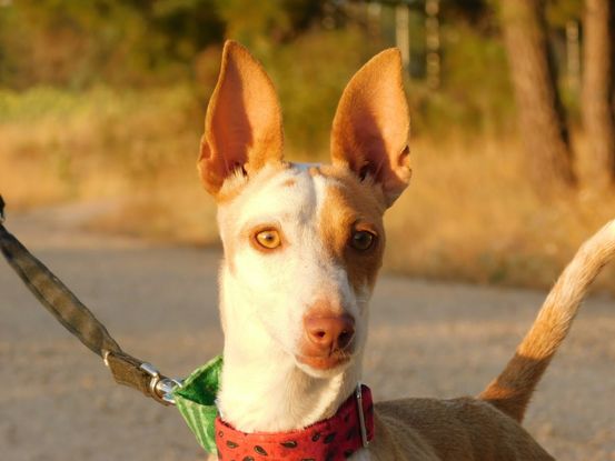 Roly est un vrai podenco, de ceux qui nous font fondre, ce regard vif, il est intelligent, nerveux, bavard....Il aime le contact et en profite. Il cherche le contact avec tous les bénévoles du refuge, il n'a peur de personne, il adore les hommes comme les femmes, tout lui va. Avec les chiens il est un peu trop cool, nous sommes prudents lors des présentations parce qu’il ne se rend pas compte de sa petite taille, mais après de bonnes présentations, il sort dans le patio de récréation avec tout le monde. Il adore les jouets et quand on marche il cherche un petit passage avec sa tête pour se mettre entre les jambes pour avoir un contact avec nous.