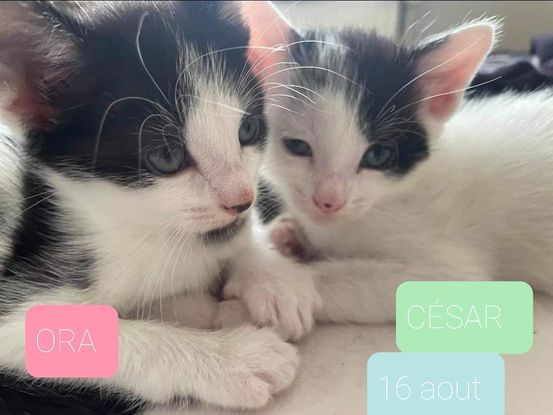 César, un peu plus timide que Ora qui elle est très curieuse et très aventureuse. Les deux sont très câlins et habitués à être manipulés par des enfants, ils sont habitués au chien et au lapin également.