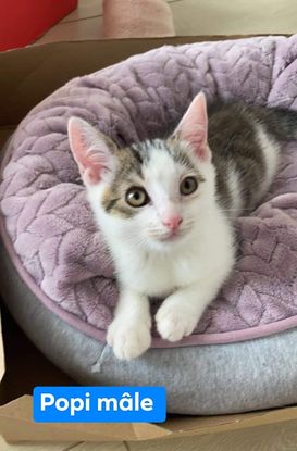 Boule d’amour d’environ 7 semaines, Popi est toujours le premier arrivé à la gamelle. Facile à vivre, il est tantôt joueur, tantôt paresseux. Il adore courir après ses sœurs et aime dormir près des pieds de son humain.