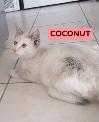 Coconut à un léger strabisme, elle est joueuse mais reste un peu peureuse pour le moment... Elles sont toutes les 2 sont en recherche du contact humain et gourmandes.