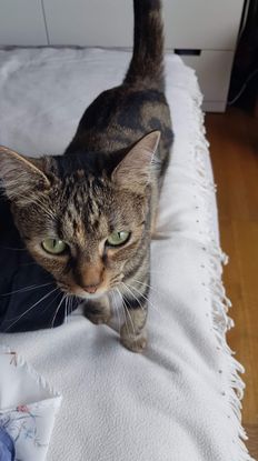 Elle aime dormir et se reposer au côté d'un humain ou sur son abre à chat.