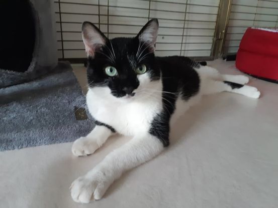 Potter est un gentil matou qui aime les caresses et vient chercher de l’affection quand on approche de sa cage.