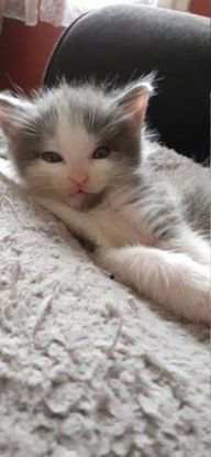 Sergio est un chaton mâle , gris et blanc né le 4 août 2021. Sorti de la fourrière de Lorient . Il avait été jeté dans une poubelle . Après un début de vie plus que compliqué , car il n'avait que 15 jours , était pleins de puces , de vers ,ne voulait pas manger, Sergio s'est révélé être un chaton plein de vie , joueur , très très très dynamique , curieux , coquin.