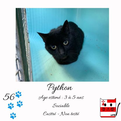 Python est un mâle de 3-5 ans sociable qui vous attend dans une fourrière du 56. ATTENTION SORTIE AU PLUS TARD LE 08/10/2021 (avant euthanasie) !
