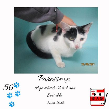 Paresseux est un mâle de 2-4 ans sociable qui vous attend dans une fourrière du 56. ATTENTION SORTIE AU PLUS TARD LE 08/10/2021 (avant euthanasie) !