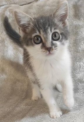 Cassiopée est arrivée avec sa maman et sa soeur, d'un sauvetage fourrière, elle était âgée d'une semaine.