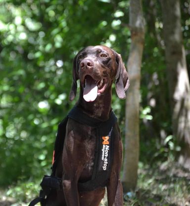 C'est une chienne gentille, câline voire pot de colle. Ce qu'elle préfère c'est courir, quelqu'un de sportif ou qui aime la randonnée ou se balader en famille sera parfait. Elle a un bon rappel au sifflet.