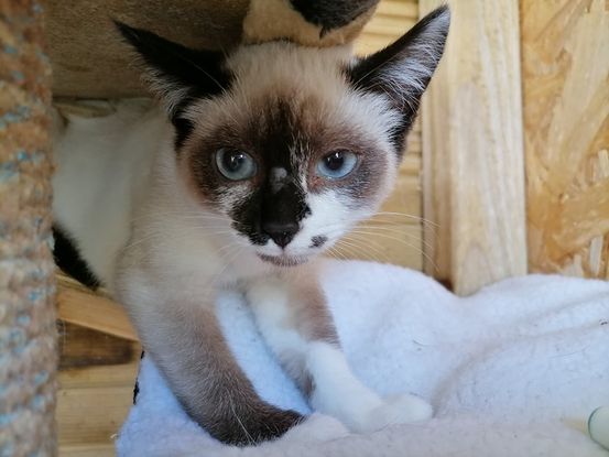 Caractère : EOLE est une chatonne gourmande, douce, coquine et joueuse.