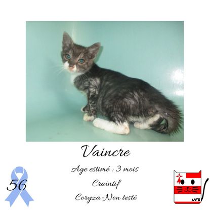 Vaincre est un mâle de 3 mois craintif (un comportement normal en fourrière) qui vous attend dans une fourrière du 56. ATTENTION SORTIE AU PLUS TARD LE 15/10/2021 (avant euthanasie) !