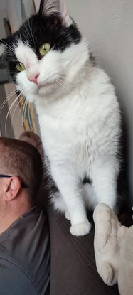 MOUSTACHE est un mâle de 4 ans, qui a dû galérer pendant plusieurs mois avant de trouver refuge chez une bénévole et de pouvoir se nourrir.