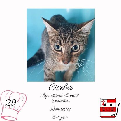 Ciseler est une femelle de 6 mois craintive (un comportement normal en fourrière) qui vous attend dans une fourrière du 29. ATTENTION SORTIE AU PLUS TARD LE 22/10/2021 (avant euthanasie) !