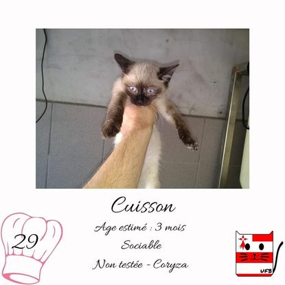 Cuisson est une femelle de 3 mois sociable qui vous attend dans une fourrière du 29. ATTENTION SORTIE AU PLUS TARD LE 22/10/2021 (avant euthanasie) !