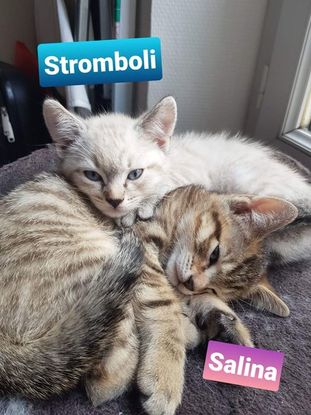 STROMBOLI est très aventureux et addict de l'escalade ! Sociable et bavard, il adore papoter et trainer dans les pattes des humains pour recevoir des caresses.