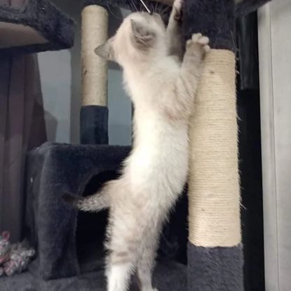 Pitchoune adore jouer avec le chat de la maison . Elle sort de sa cachette d'elle- même et explore la maison.