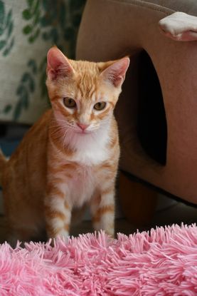 Rousquille est né en avril de cette année, sa maman est une minette errante que nous avons stériliser et relâcher sur son lieu de vie car elle n’était pas sociable. Pourtant Rousquille est un chaton adorable, calin, calme, sociable et propre;