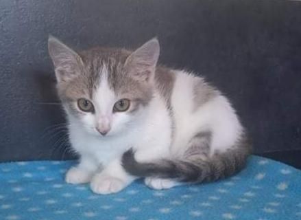 Née le 4 septembre, Swane à la jolie robe grise tigrée et blanche, attend ses futurs adoptants en famille d’accueil.