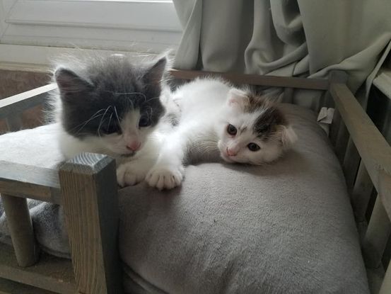 On vous présente Splat et Scottish, deux adorables chatons mâles nés le 16 août 2021. Ils sont adorables, joueurs, câlins. Ils sont adoptables ensemble car inséparables et ils se canalisent l'un l'autre.