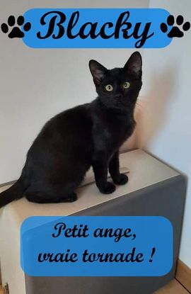 Blacky est un peu plus sur la réserve quand il ne connaît pas mais ne tarde pas à se dévergonder comme son frère et alors, gare à tout ce qui traîne, tout est sujet à découverte et surtout ... À jouer !
