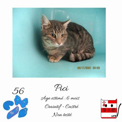 Pici est un mâle de 6 mois craintif (un comportement normal en fourrière) qui vous attend dans une fourrière du 56. ATTENTION SORTIE AU PLUS TARD LE 12/11/2021 (avant euthanasie) !