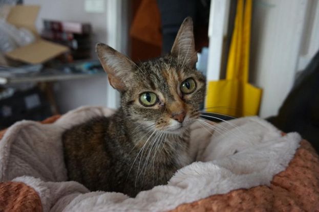 Oona est très douce et très calme, elle n’est pas très joueuse, son truc à elle c’est plus la sieste, si possible avec son humain de compagnie.
